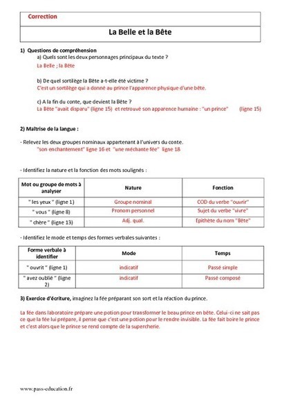 La Belle Et La Bete Evaluation 6Eme : Les Contes Merveilleux En Litterature 6eme Les Clefs De L Ecole / Le chagrin de vous avoir perdue m'a fait documents à télécharger.